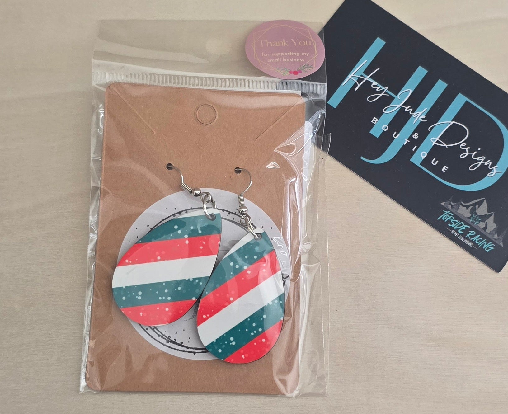 Glitter Christmas Striped Double Sided Tear Drop Dangle Earrings
